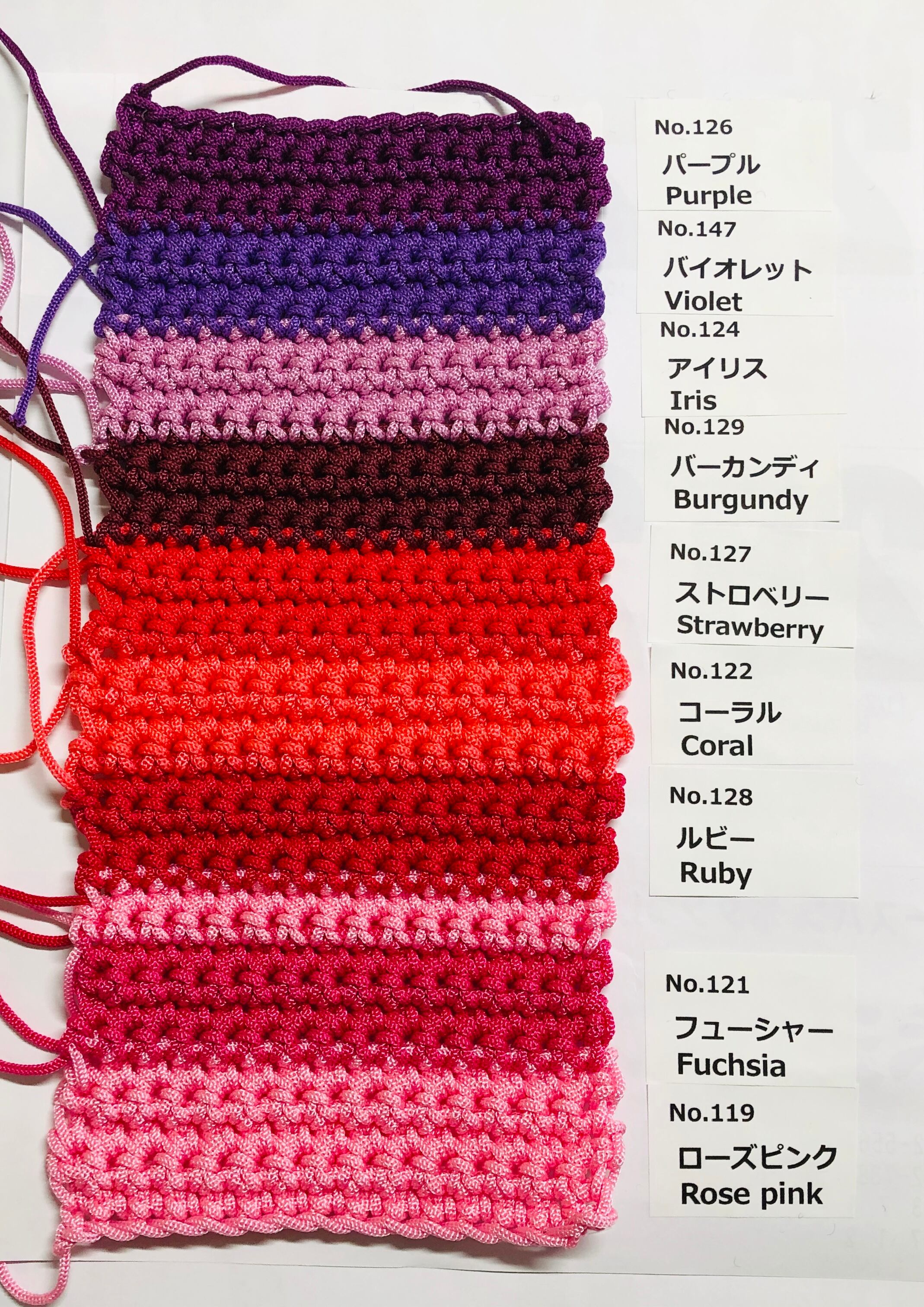 マクラメ、かぎ針編み、棒針編み作品などに使えるカラフルで万能な糸です。
