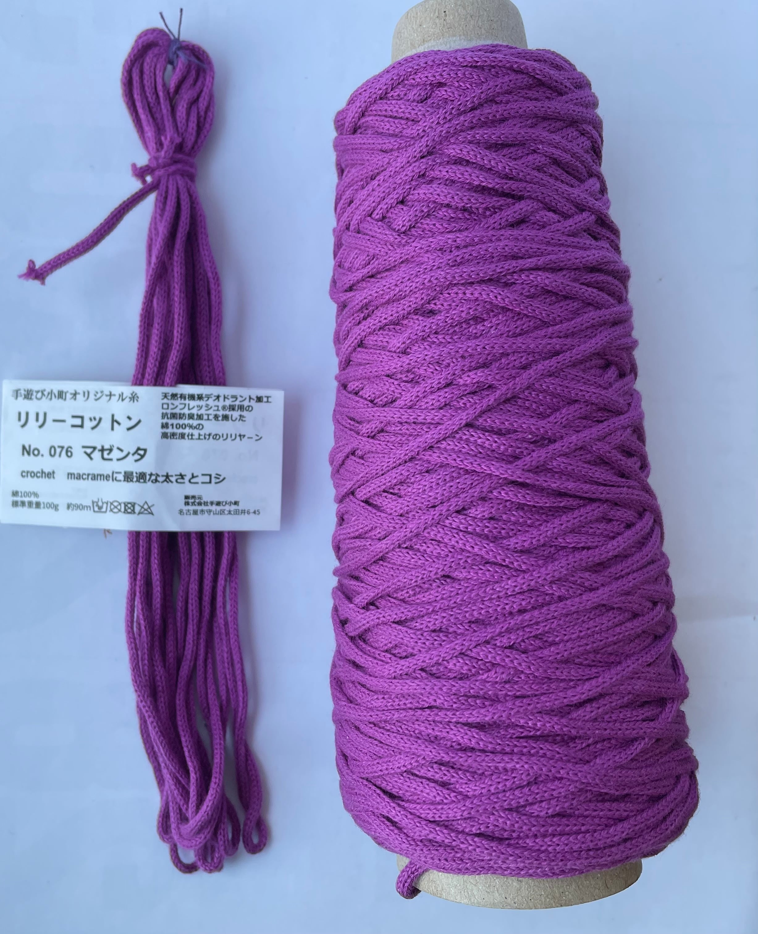 インテリア、ファッション小物に最適な4本針高密度リリー編みの美しい仕上がりの高級編み糸です。